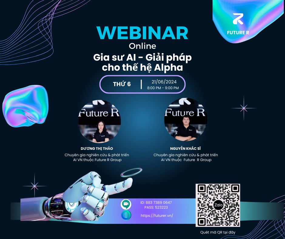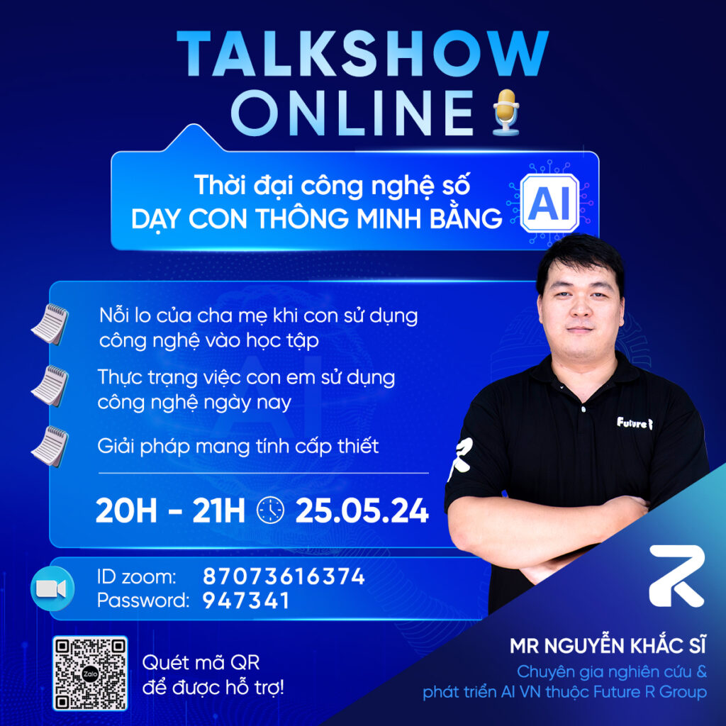 Trang chủ Hội thảo công nghệ có gì? Vào tối 20h ngày 25/05/2024 cuộc hội thảo trực tuyến với chủ đề” Chia sẻ về cách thức dạy con thông minh trong thời đại số AI ” đã được tổ chức chức tại trụ sở công ty Future R với sư góp mặt của nhiều bậc […]